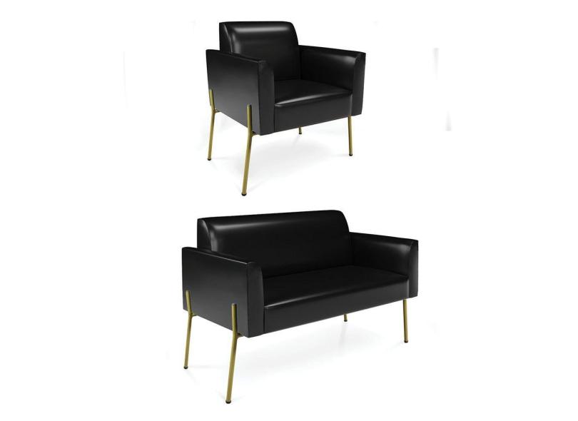 Sofá Namoradeira e Poltrona Pé de Ferro Dourado Marisa Corano Preto D03 - D`Rossi