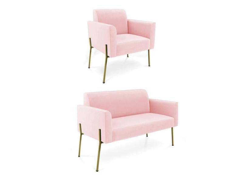O menor preço encontrado no Brasil para Sofá Namoradeira E Poltrona Pé De Ferro Dourado Marisa Suede D03 - D`rossi Cor Rosa Bebê atualmente é R$ 1.166,79.