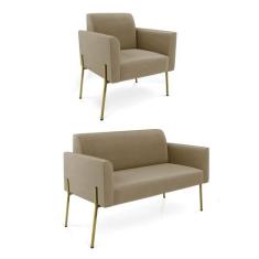 Sofá Namoradeira e Poltrona Pé de Ferro Dourado Marisa Suede Marrom Rato D03 - D`Rossi