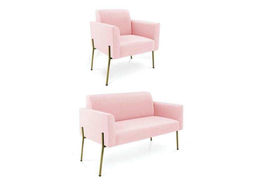 O menor preço encontrado no Brasil para Sofá Namoradeira E Poltrona Pé De Ferro Dourado Marisa Suede Rosa Bebê D03 atualmente é R$ 1.127,02.