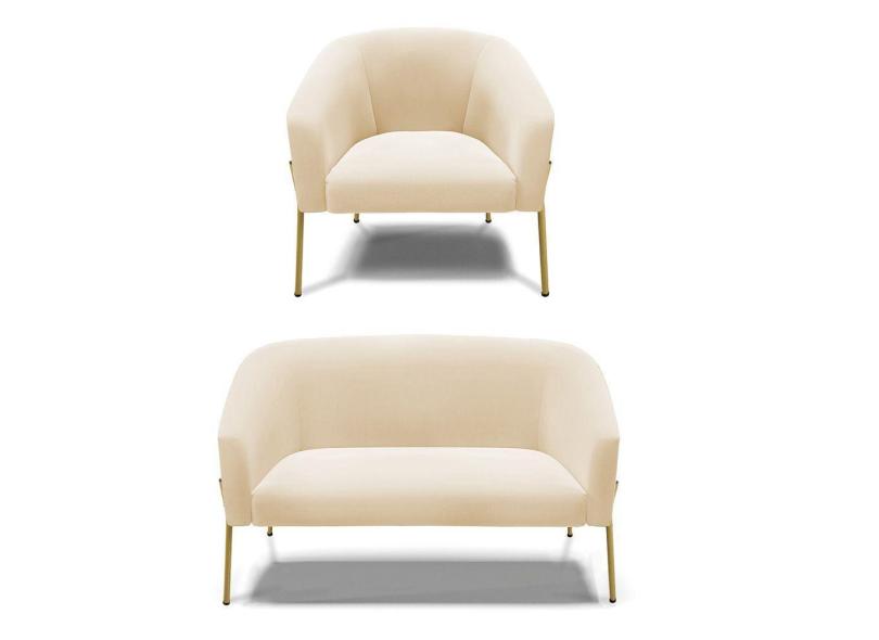 Sofá Namoradeira E Poltrona Pé De Ferro Dourado Stella Suede Bege D03 - D'rossi