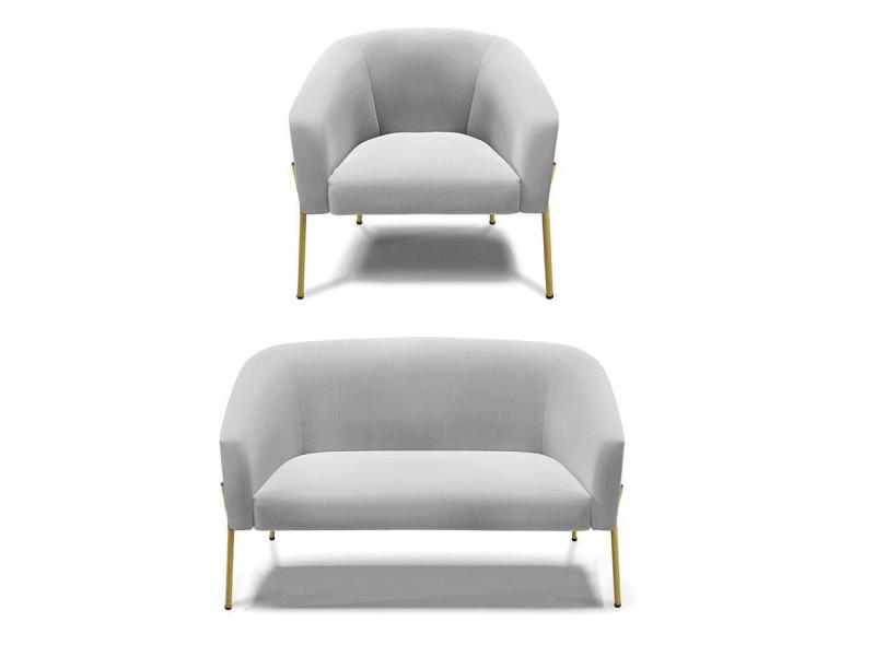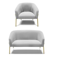 Sofá Namoradeira E Poltrona Pé De Ferro Dourado Stella Suede Cinza D03 - D'rossi