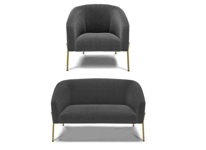 O menor preço encontrado no Brasil para Sofá Namoradeira E Poltrona Pé Ferro Dourado Stella Bouclê Grafite D03 - D`rossi atualmente é R$ 1.385,42.