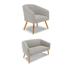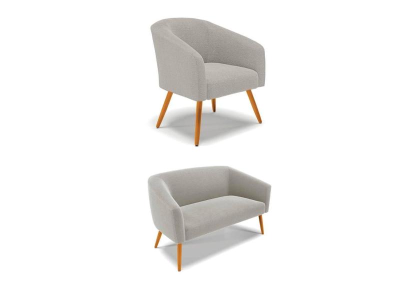 Sofá Namoradeira e Poltrona Pé Palito Castanho Stella Bouclê Cinza D03 - D`Rossi