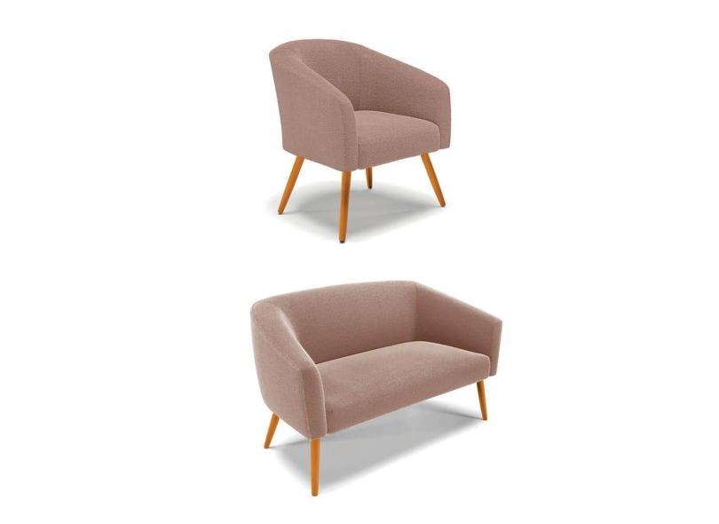 Sofá Namoradeira e Poltrona Pé Palito Castanho Stella Bouclê Rosê D03 - D`Rossi