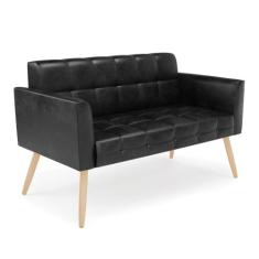 Sofá Namoradeira Elisa Corano Preto Pés Palito Natural - D'Rossi