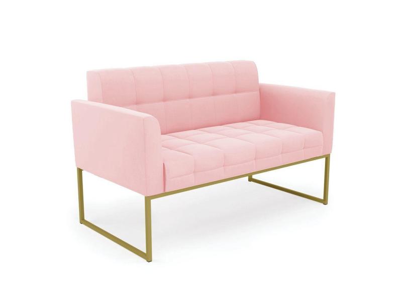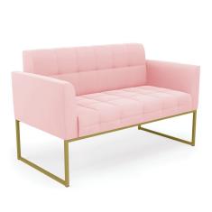 Sofá Namoradeira Elisa Suede Rosa Bebê Base Metálica Industrial Dourada - D'rossi
