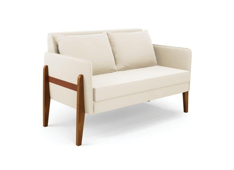 Sofá Namoradeira Lana Veludo Base De Madeira - D'rossi Cor Bege