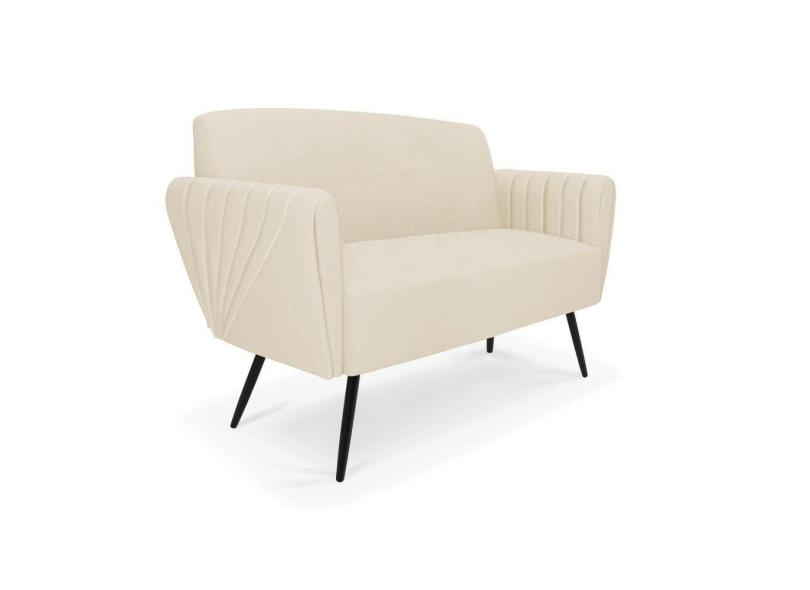 Sofá Namoradeira Pés Palito de Ferro Bruna Linho Bege A19 - D`Rossi