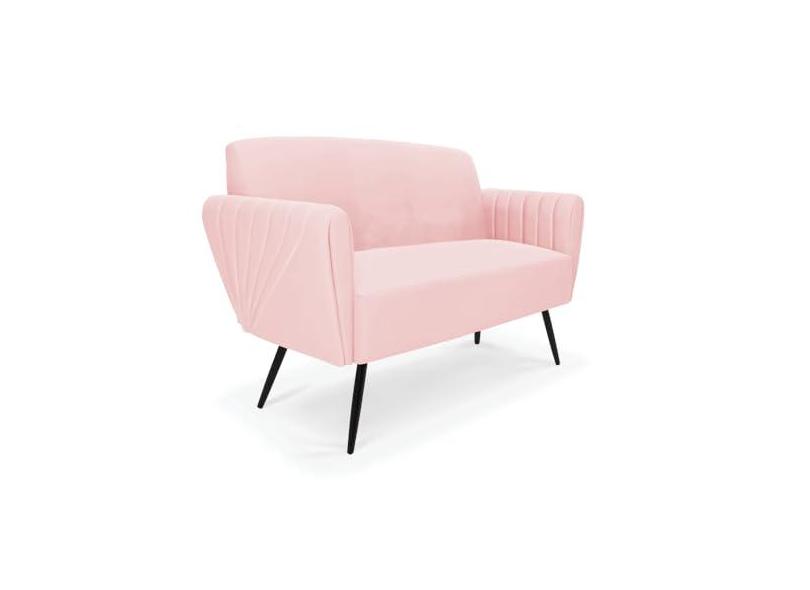 Sofá Namoradeira Pés Palito de Ferro Bruna Suede Rosa Bebê - D'Rossi