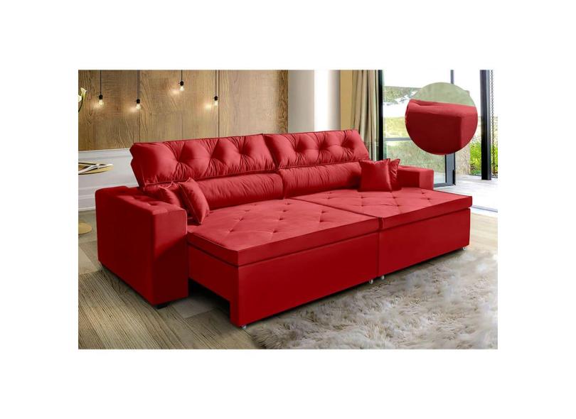Sofá New Austin 2,02 m Retrátil com Molas Vermelho