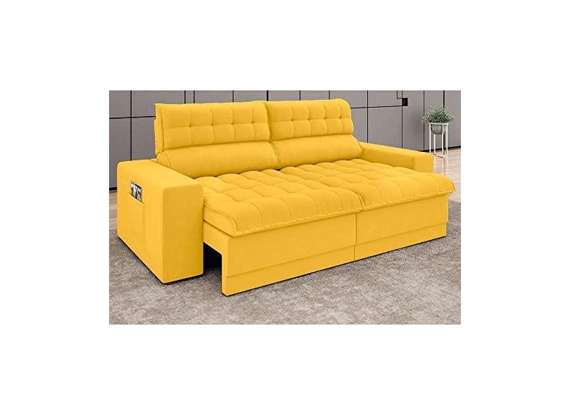 Sofá Omega 2,50m Assento Retrátil e Reclinável Velosuede Canário - Netsofas