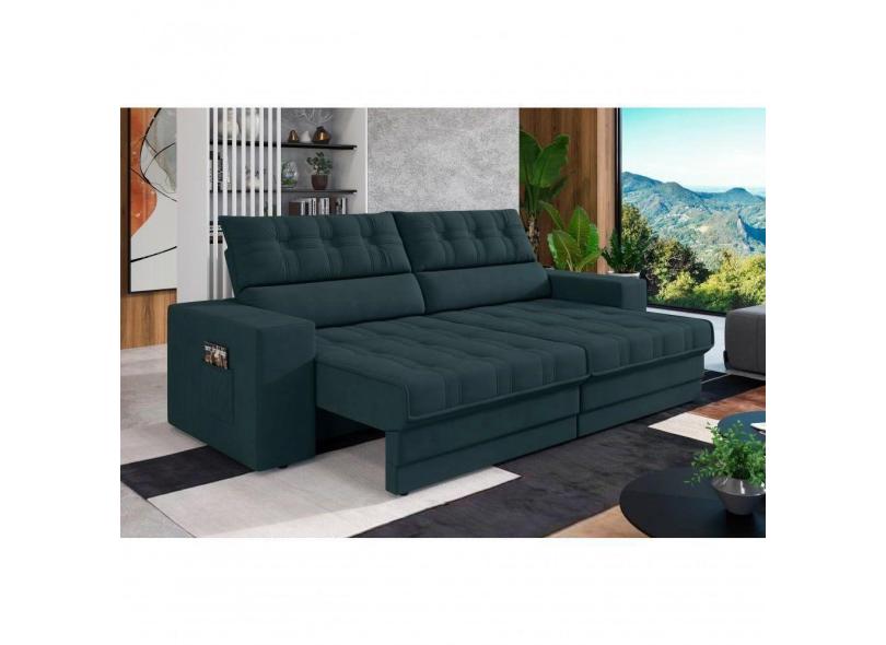 Sofá Omega Plus 2,30m Retrátil/reclinável Suede Petróleo - Xflex
