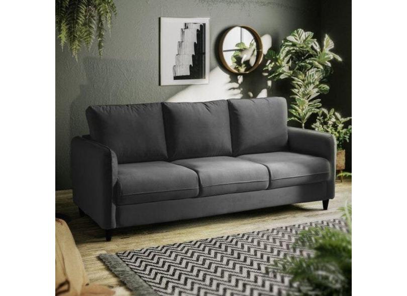 Sofá Orquídea 3 Lugares em Veludo Cabecasa Madeiramadeira Cinza