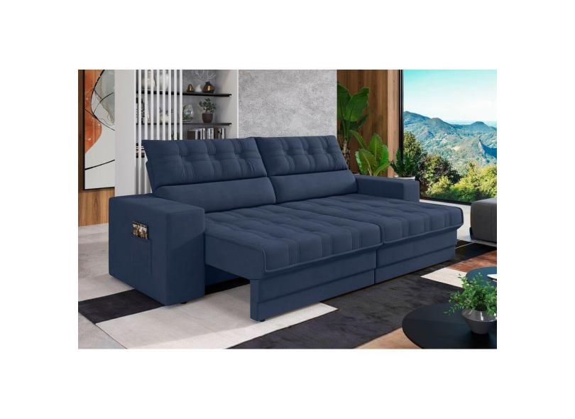 Sofá Oscar Plus 2,00m Retrátil/Reclinável Suede Azul - XFlex Sofás