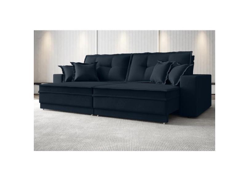 Sofá Palermo 2,40m Retrátil e Reclinável Velosuede Petroleo - netsofas