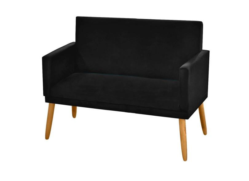 Sofá Pés Palito Estofado de 2 Lugares Nina Suede Preto