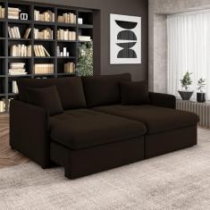 Sofá Reclinável e Retrátil Gandalf Bipartido 194cm Caixa Zero com Almofadas Veludo Marrom G33 - Gran Belo