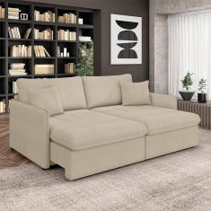 Sofá Reclinável E Retrátil Gandalf Bipartido 234cm Caixa Zero Com Almofadas Bouclê Bege G33 - Gran
