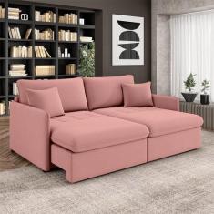 Sofá Reclinável e Retrátil Gandalf Bipartido 234cm Caixa Zero com Almofadas Veludo Rosê G33 - Gran Belo