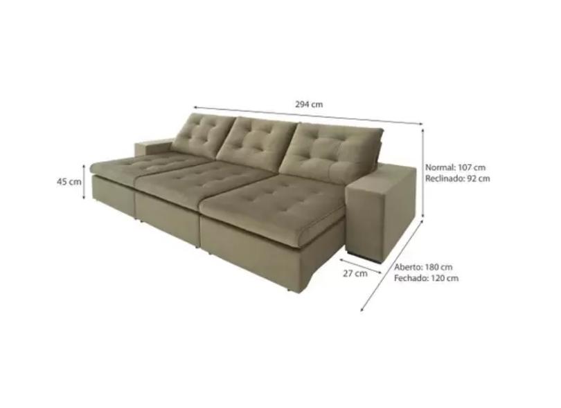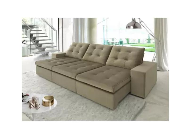 Sofá Reclinável Retrátil Veludo Ferrero 294cm Di Qualitá