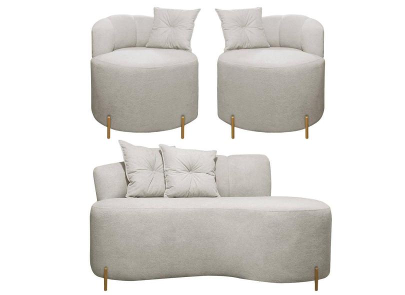 O menor preço encontrado no Brasil para Sofá Redondo Grecia 1.45m 2 Lugares + 2 Poltronas Bouclê Bege SOFA STORE atualmente é R$ 3.705,74.