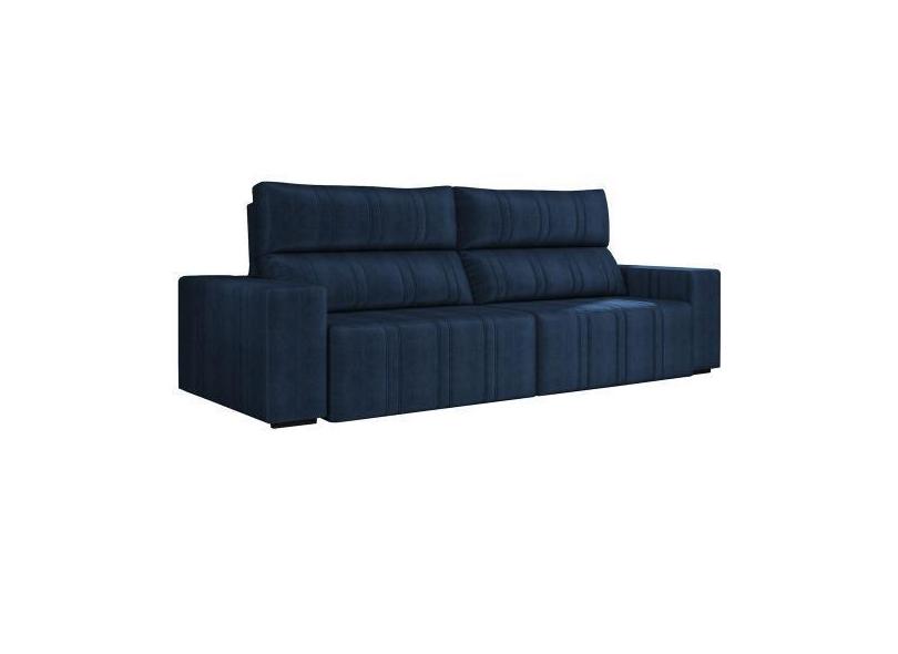 Sofá Retrátil 214 Cm Sala De Estar Leonel Suede Azul Marinho G52 - Gra