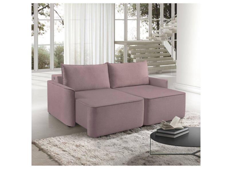 Sofá Retrátil 260cm com Kit Entrada USB 4 Lugares Moon 2326 Rosa
