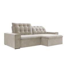 Sofá Retrátil 274 cm Sala de Estar Gabi Suede Bege G52 - Gran Belo