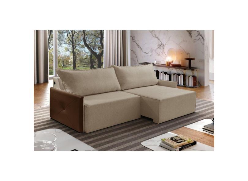 Sofá Retrátil 3 Lugares 170cm Braço em Corino com USB Veludo Serena Yescasa Bege