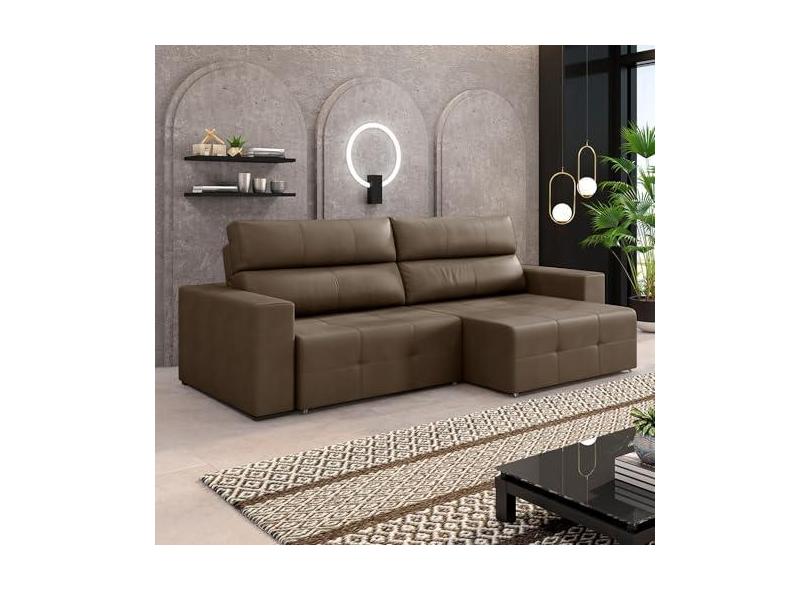 Sofá Retrátil 3 Lugares 244cm 2 Módulos Nero Couro Cappuccino G52 - Gran Belo
