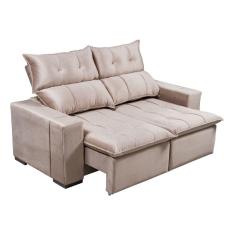 Sofá Retrátil 3 Lugares Bressiani Verona P742 Veludo Bege