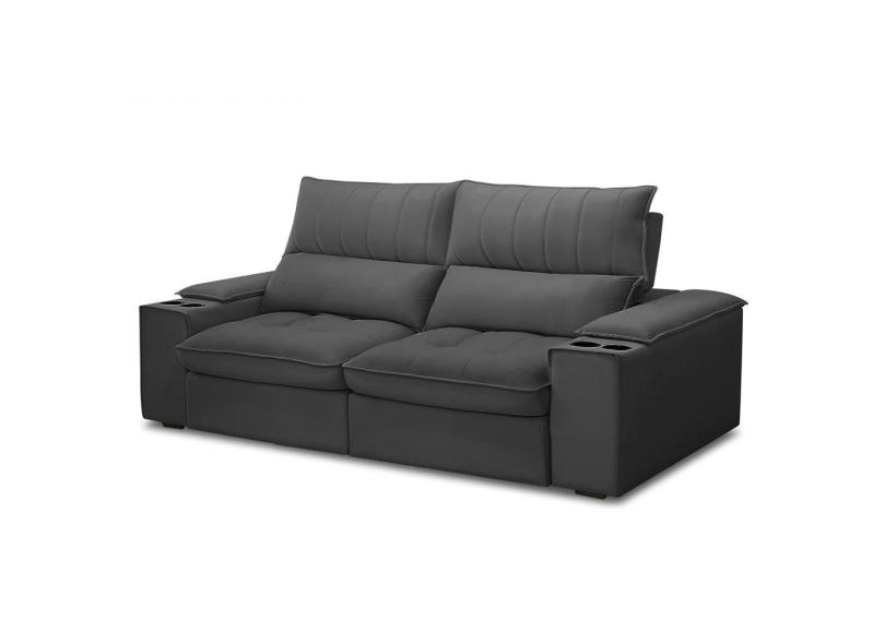 Sofá Retrátil 3 Lugares com Porta Copo 210cm Andes F05 Veludo Grafite - Mpozenato
