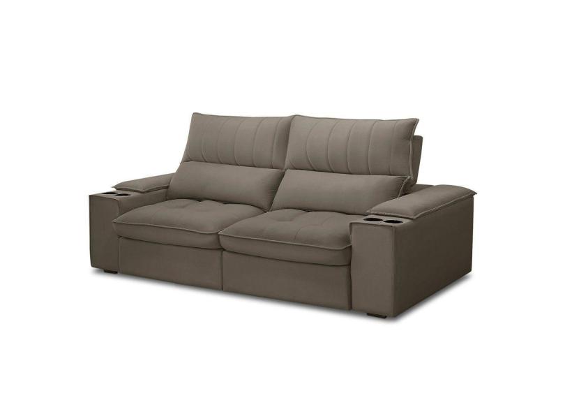 Sofá Retrátil 3 Lugares Com Porta Copo 210cm Andes F05 Veludo Marrom
