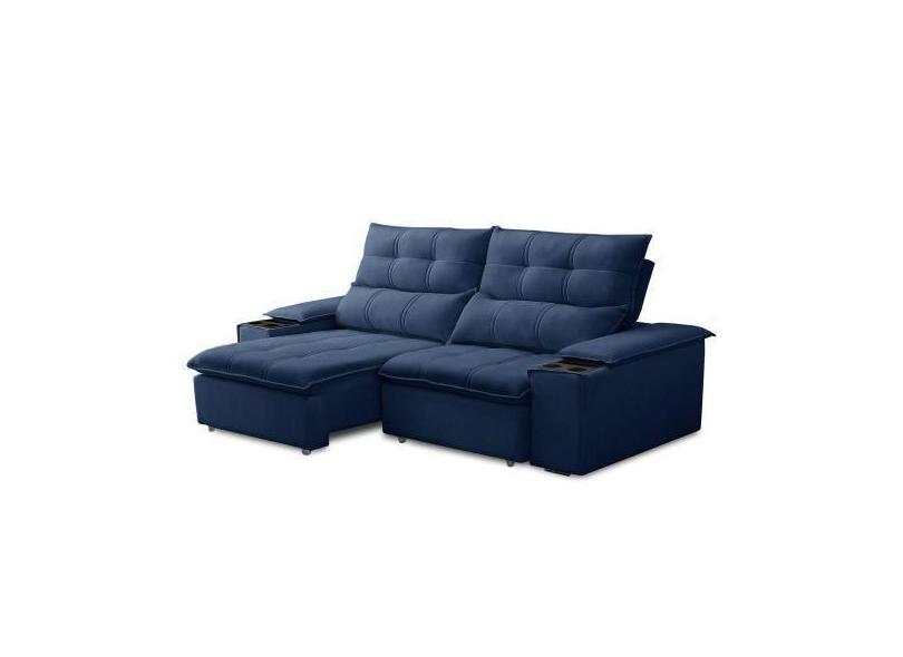 Sofá Retrátil 3 Lugares Com Porta Copo 210cm Malta F05 Veludo Azul - M
