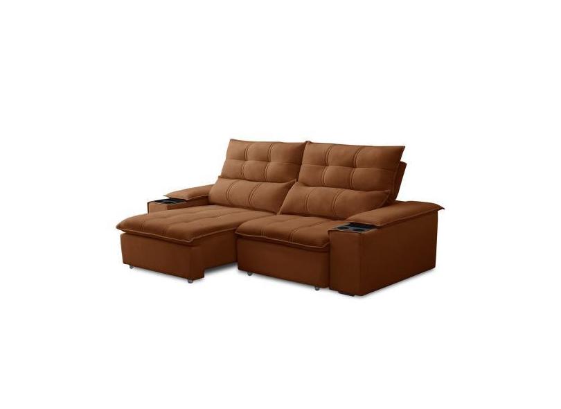 Sofá Retrátil 3 Lugares Com Porta Copo 210cm Malta F05 Veludo Terracot