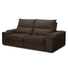 Sofá Retrátil 3 Lugares com Porta Copo 230cm Andes F05 Veludo Marrom E