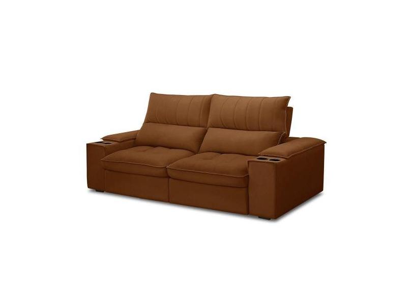 Sofá Retrátil 3 Lugares Com Porta Copo 230cm Andes F05 Veludo Terracot