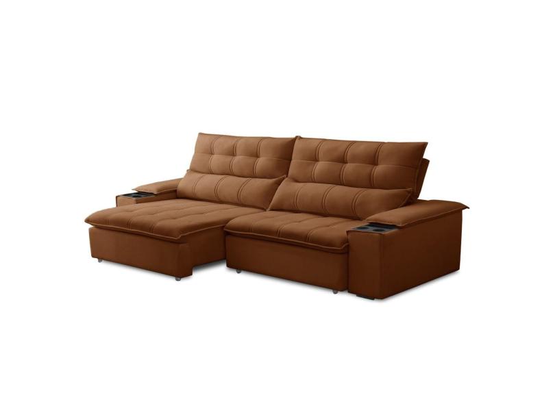 O menor preço encontrado no Brasil para Sofá Retrátil 3 Lugares Com Porta Copo 230cm Malta F05 Veludo Terracota - Mpozenato atualmente é R$ 3.298,60.