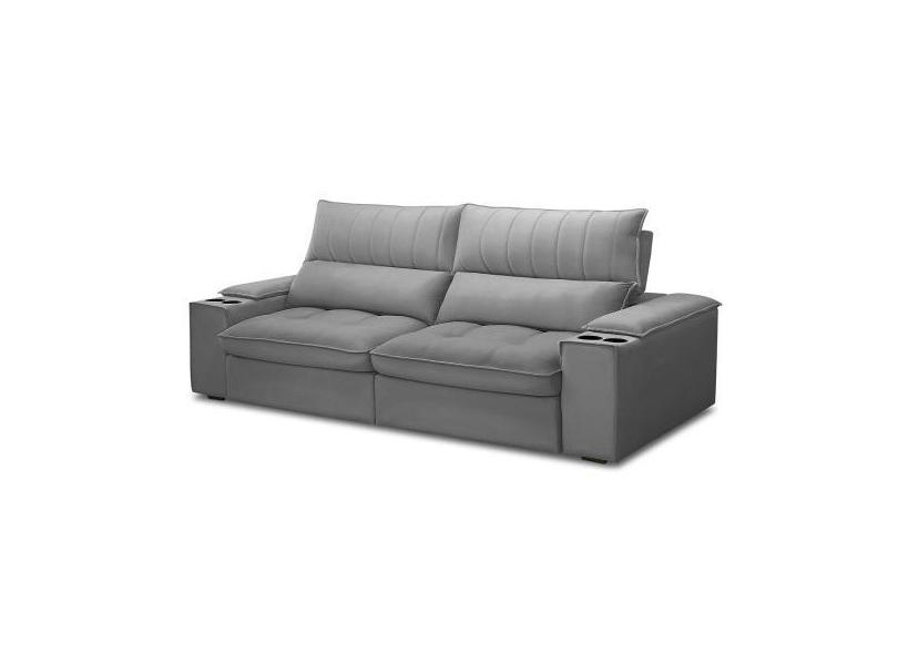 Sofá Retrátil 3 Lugares Com Porta Copo 250cm Andes F05 Veludo Cinza -