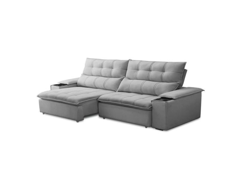 Sofá Retrátil 3 Lugares Com Porta Copo 250cm Malta F05 Veludo Cinza