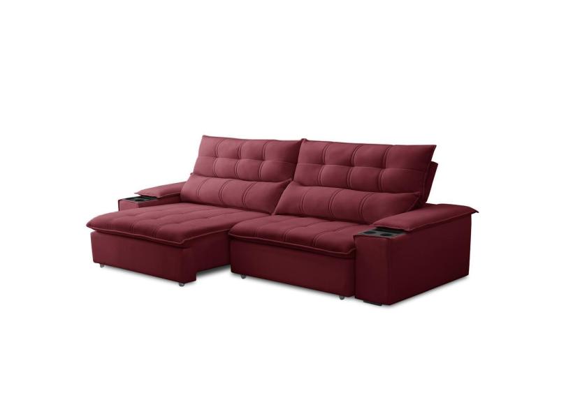 Sofá Retrátil 3 Lugares com Porta Copo 250cm Malta F05 Veludo Vinho - Mpozenato