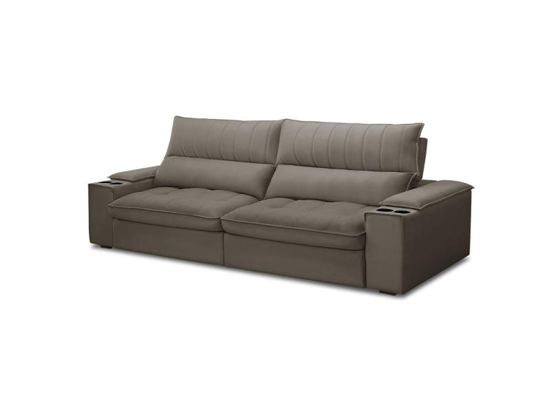Sofá Retrátil 4 Lugares com Porta Copo 280cm Andes F05 Veludo Marrom - Mpozenato
