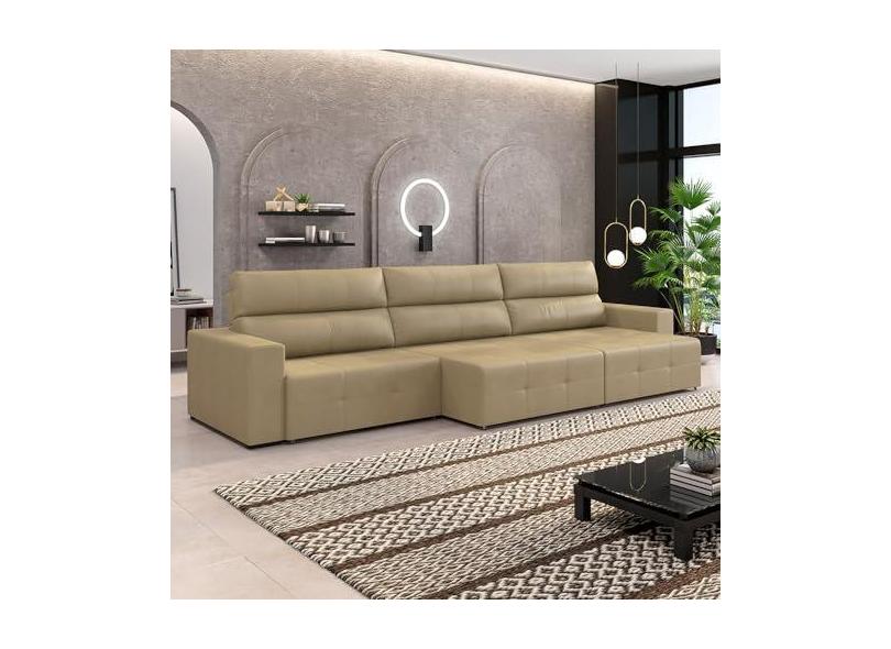 Sofá Retrátil 5 Lugares 314cm 3 Módulos Nero Couro Bege G52 - Gran Belo