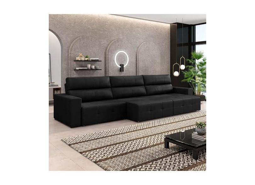 Sofá Retrátil 5 Lugares 314cm 3 Módulos Nero Couro Preto G52 - Gran Belo