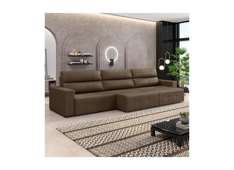 Sofá Retrátil 5 Lugares 374cm 3 Módulos Nero Couro Cappuccino G52 - Gran Belo