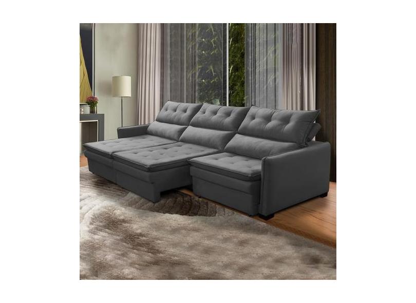Sofá Retrátil 6 Lugares 290 Cm Legacy Reclinável Mola Bonnel Braço Fin