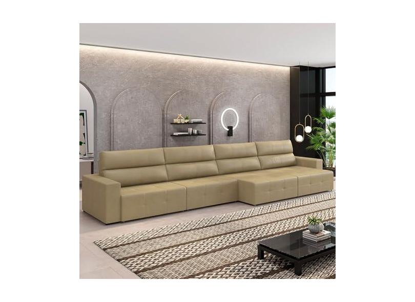 Sofá Retrátil 6 Lugares 444cm 4 Módulos Nero Couro Bege G52 - Gran Belo