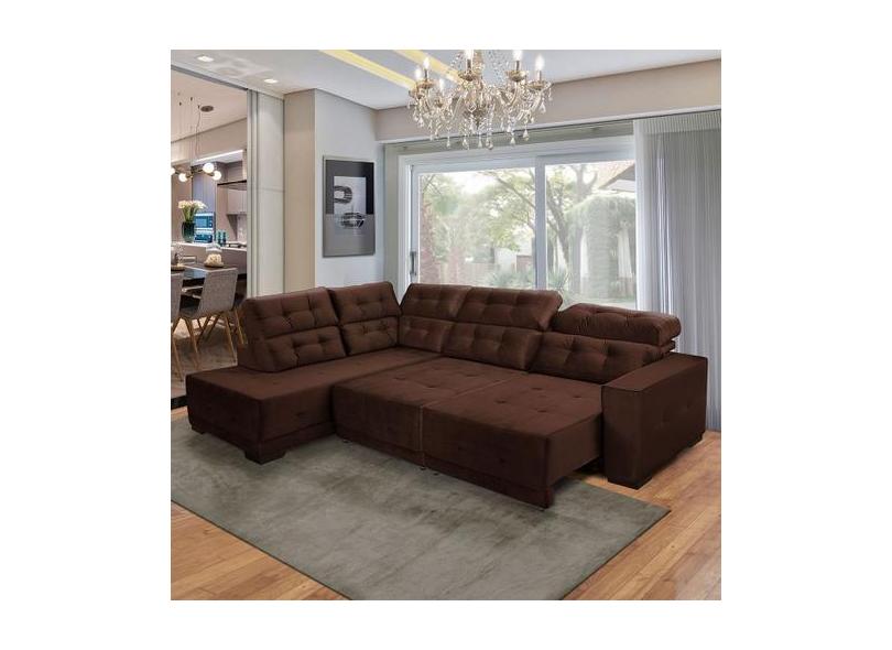 O menor preço encontrado no Brasil para Sofá Retrátil De Canto 5 Lugares Chaise 285 Cm Suede Marrom - Sósofá atualmente é R$ 9.515,12.