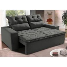 Sofá Retrátil e Reclinável 1,50m Cama Inbox Smal com bordado pantográfico Suede Cinza